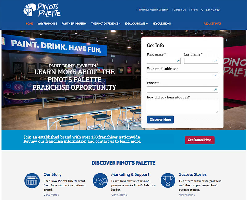 Pinot’s Palette is one of the nation’s largest paint and sip franchise opportunities. Each of our locations provides a relaxed, fun environment, and expert guidance on painting techniques from local artists.