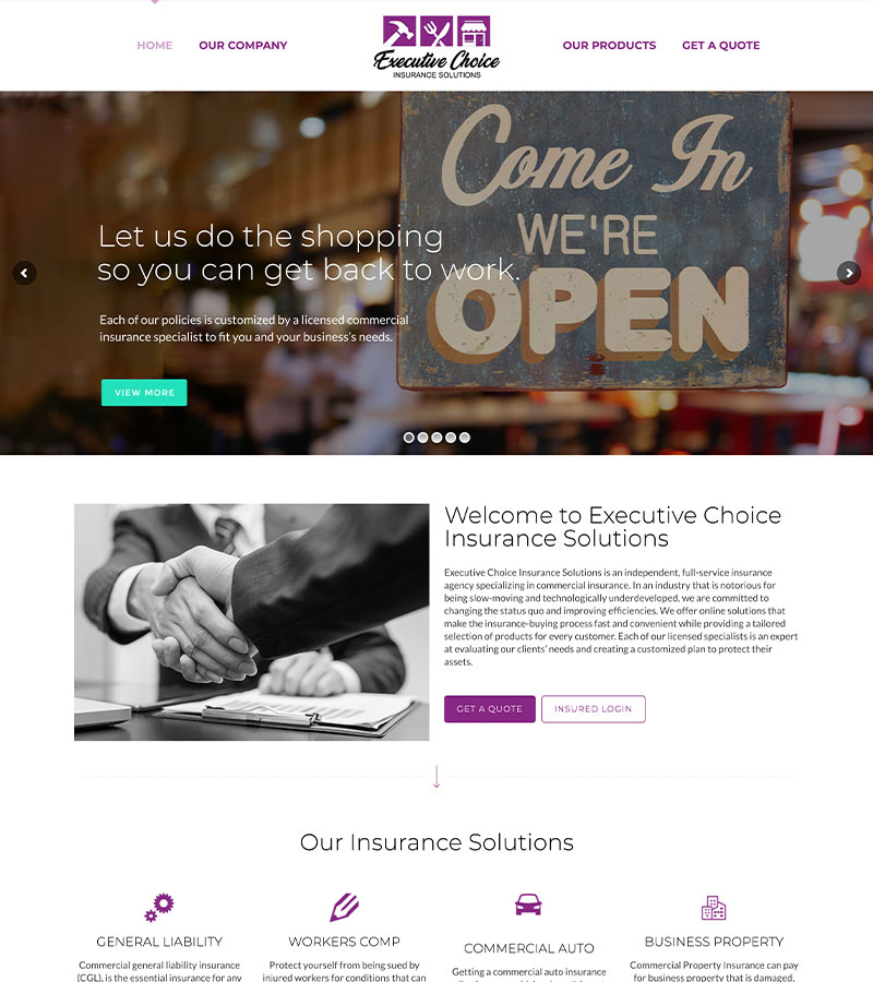 Executive Choice Insurance brings the quality service of a local “mom and pop” insurance agency to the online marketplace.