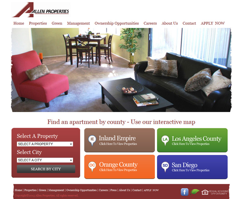 Allen Properties is a family owned apartment management company originally formed in 1978. Our portfolio of multi-family communities has grown over the past 30 years to 2700 units in 52 locations throughout Southern California.