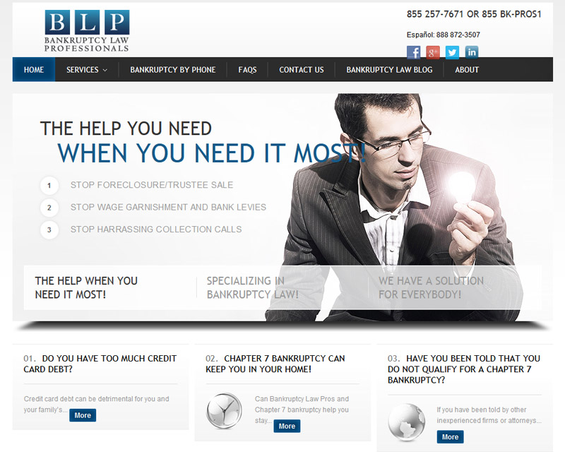 Bankruptcy Law Professionals is a law office dedicated to providing bankruptcy and debt relief services to individuals and businesses. We have nearly a decade of experience practicing law in the area of bankruptcy and debt relief.