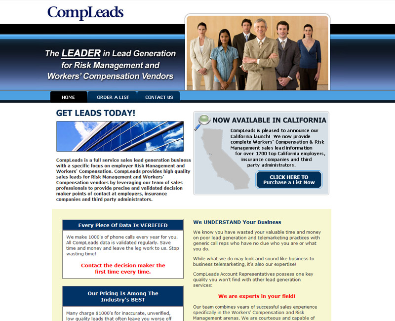 CompLeads is a full service sales lead generation business with a specific focus on employer Risk Management and Workers’ Compensation. CompLeads provides high quality sales leads for Risk Management and Workers’ Compensation vendors by leveraging our team of sales professionals to provide precise and validated decision maker points of contact at employers, insurance companies and