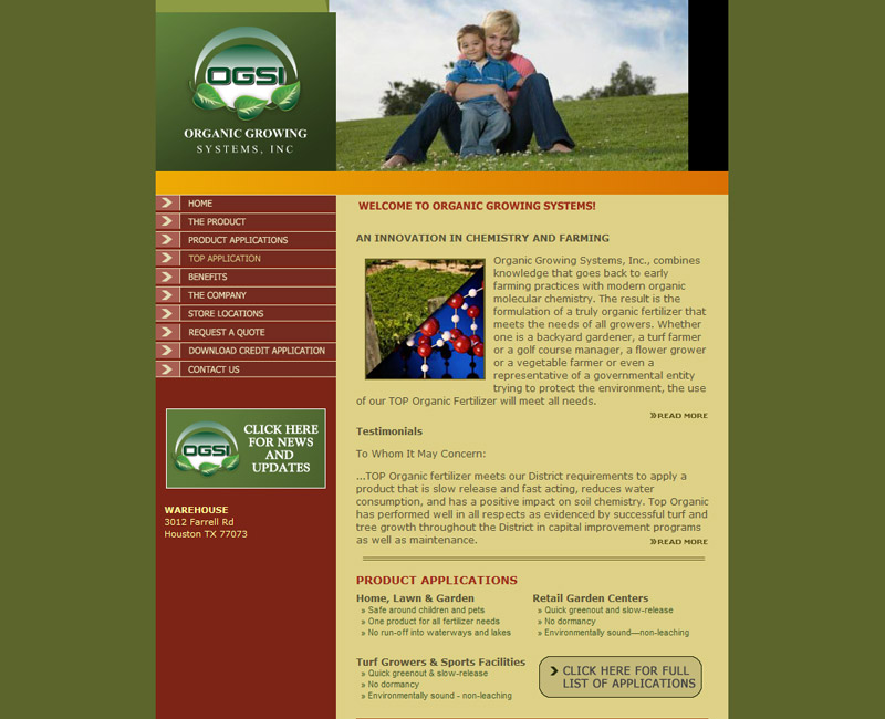 Organic Growing Systems, Inc., combines knowledge that goes back to early farming practices with modern organic molecular chemistry. The result is the formulation of a truly organic fertilizer that meets the needs of all growers. Whether one is a backyard gardener, a turf farmer or a golf course manager, a flower grower or a vegetable