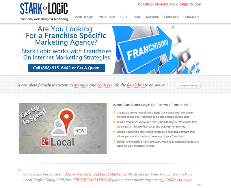 Stark Logic has been in business more than 15 years and has worked with over 500 businesses. We specialize in franchise web site design, consumer web design, custom software application development, franchisee web microsites, internet marketing, and local marketing.