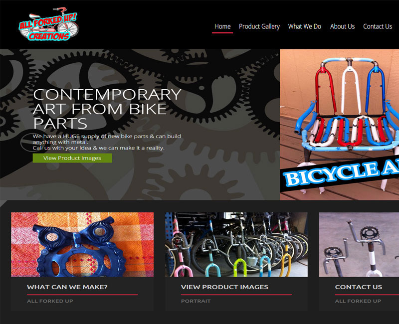 All forked up creations began when we ended up with an over abundance of bike parts. We fabricate custom stainless railing during the day & started looking at the hundreds of extra bike parts in the evening & decided to turn them into something useful.